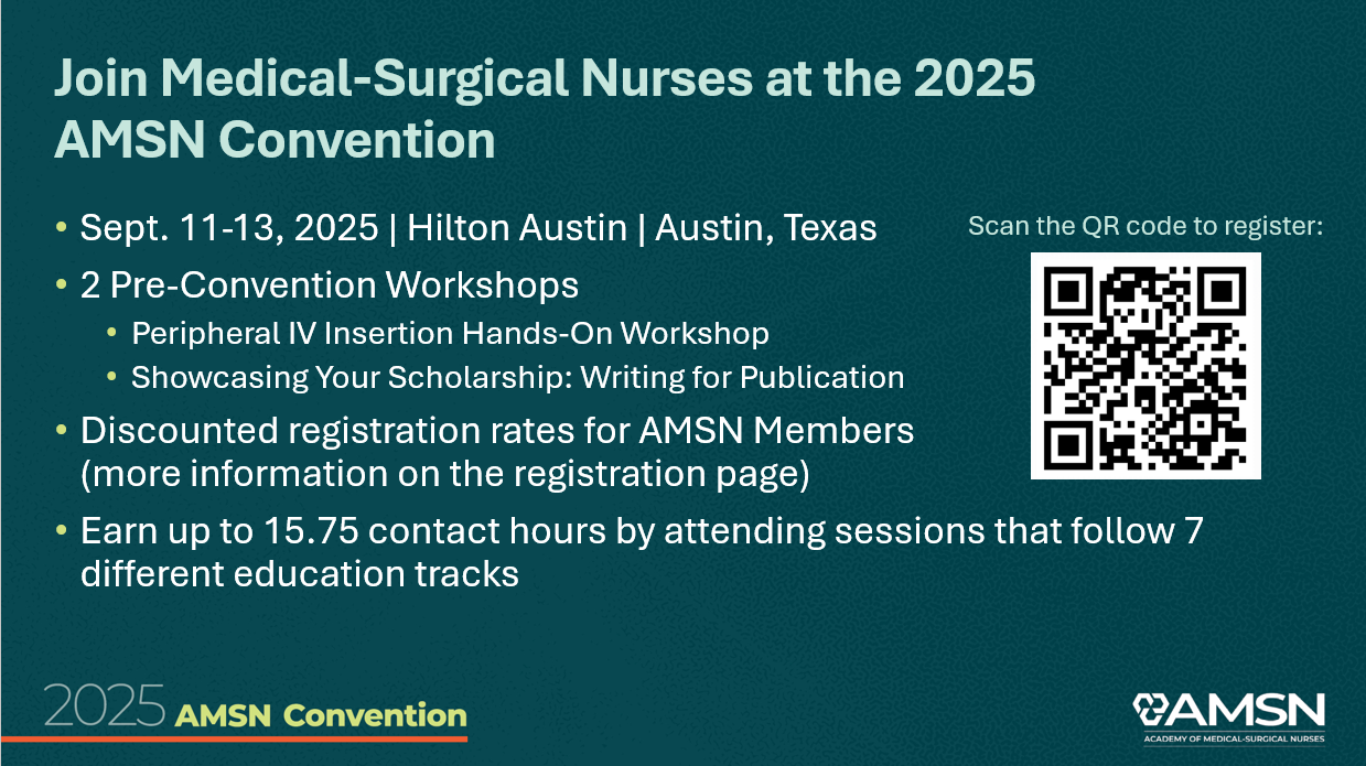 Saddle up and join us in Austin, Texas, for the 2025 AMSN Convention! The AMSN Convention is the can’t-miss event for medical-surgical nurses. Register today and experience three days of learning, networking, and impactful conversations.