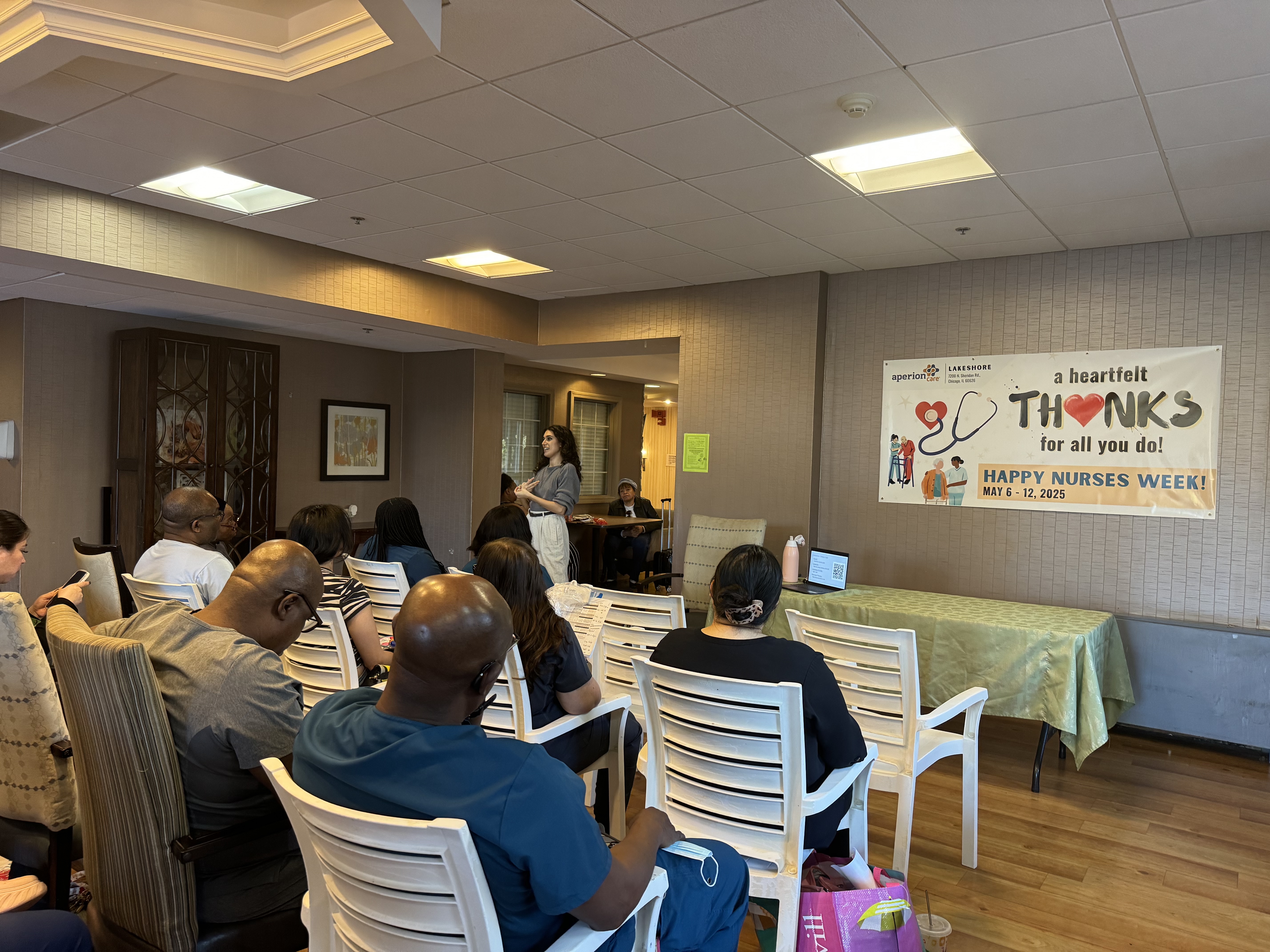 A special thanks to Aperion Care Lakeshore, who generously provided the space, and our speaker Dr. Jamal-Eddine, who reminded us that disability justice belongs in conversations about diversity, equity, and inclusion. It was a meaningful and inspiring way to launch National Nurses Week — centered on inclusion, equity, and the power of storytelling.