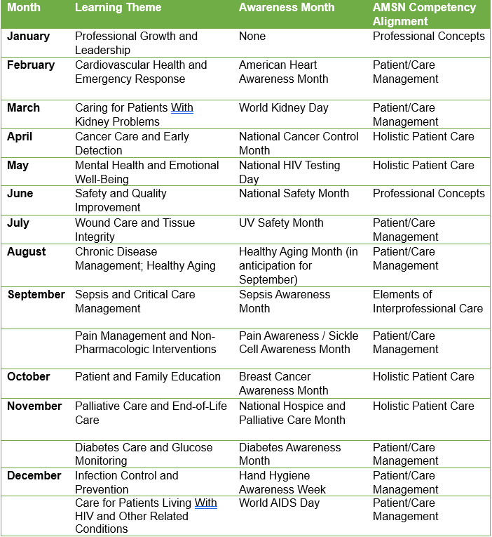 - Comprehensive Competency Development: Monthly themes can systematically cover the AMSN competency framework.