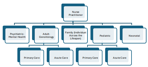 As a nurse practitioner, your educational path requires you to choose a population focus and sometimes a practice setting for your specialty. This includes adult-gerontology acute care, adult-gerontology primary care, family, pediatric acute care, pediatric primary care, neonatal, or psychiatric-mental health. It is possible to complete a program in more than one specialty, especially if needed for the patient care environment in which you want to work.